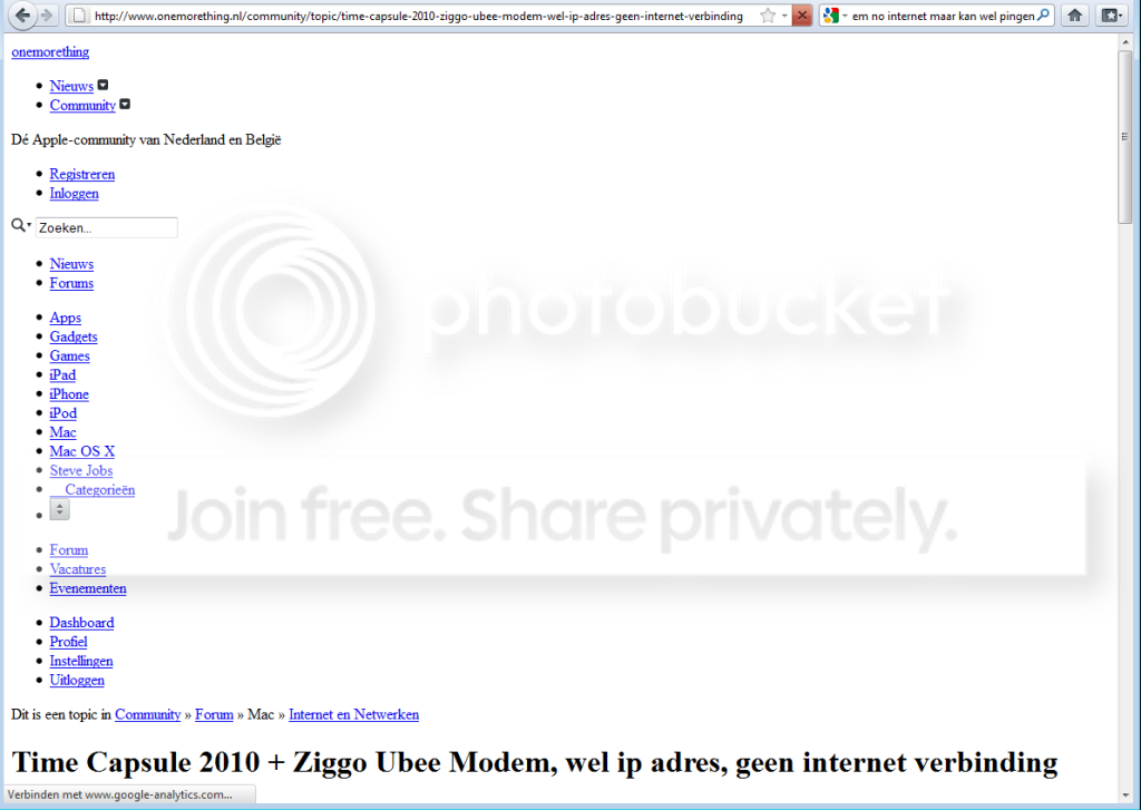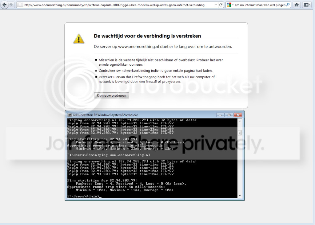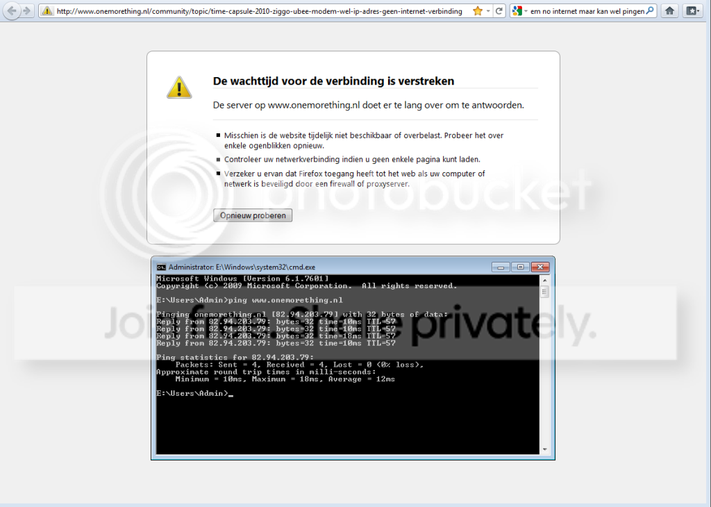 Onemorething.nl onbereikbaar via Firefox (en IE) maar wel te pingen zonder packetloss.